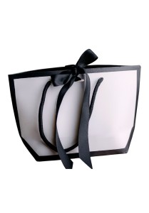 A white bag with black accents and a ribbon – an elegant packaging choice for gifts.